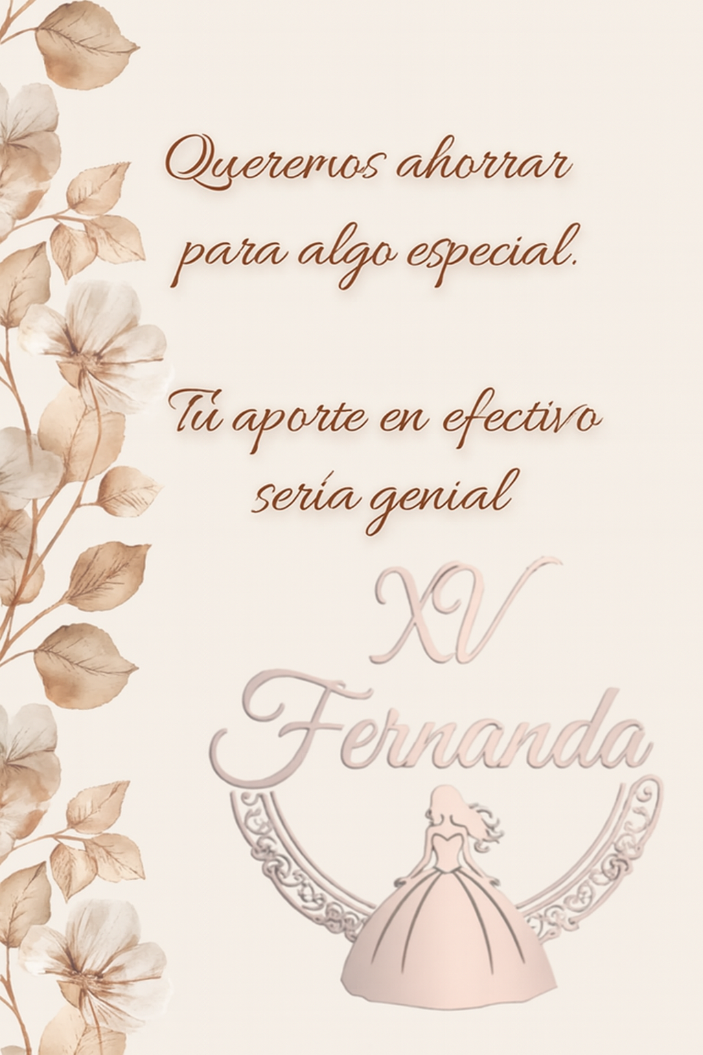 Con la bendición de Dios y el amor de mi familia, ha llegado el momento de celebrar mis XV años. Me encantaría que me acompañaras en este día tan especial para compartir juntos alegría, baile y momentos inolvidables.